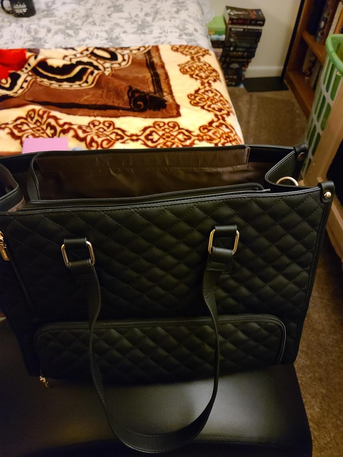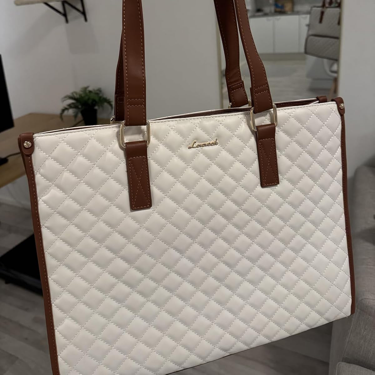 Hochwertiges veganes Leder mit gepolstertem Finish, wasserdichte Außenseite und leicht zu reinigendem Innenfutter